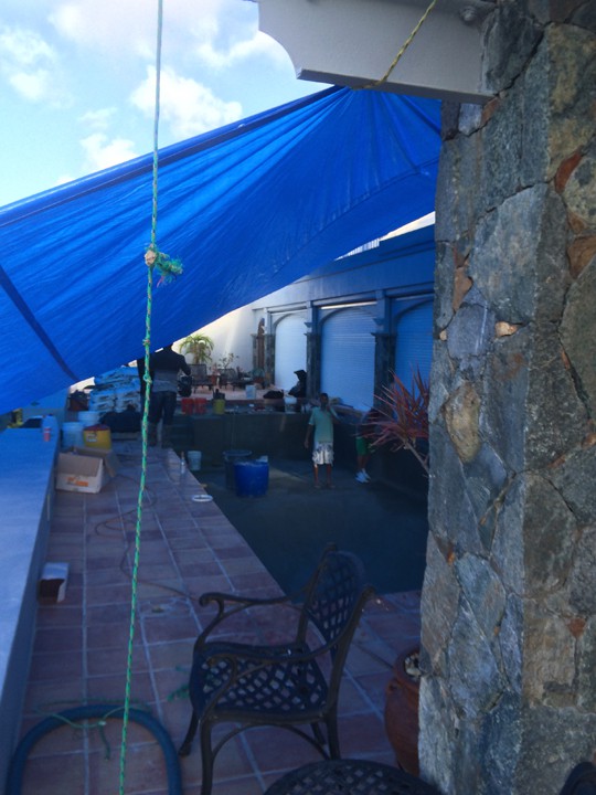 The tarp is up.