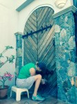 One assigned project is to keep the concrete walls around the patios painted and touched up before guests arrive and/or after weddings and events. Due to the heat, the flat surfaces of these walls get extremely hot causing the paint to blister in areas. So …. before you can paint, you have to cut out the blisters and peel off the paint where it is not adhering. That’s one project we did this weekend. And Sharon decided to use the time in the sun to work on her tan. Ergo the title: Peeling, Painting, and Bikini.